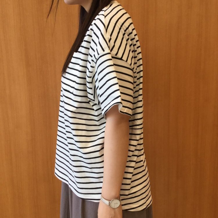 Col.ホワイト.グレーベージュ.イエロー.ピンク.グリーン.チャコール.カーキボーダー.ブラックボーダー(着用)