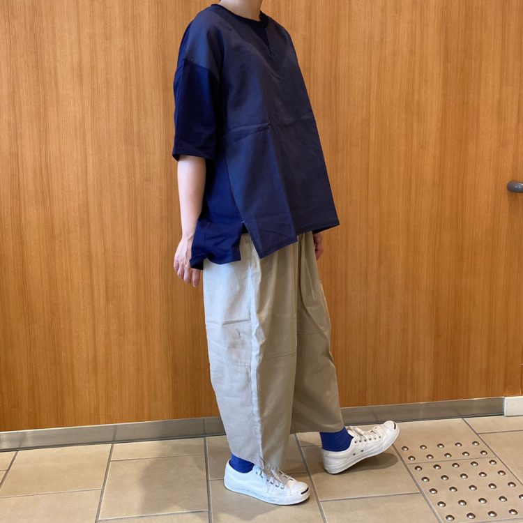 urnis outlet 北広島店のスタッフが、 直接ご対応させて頂きます。 画像だけでは分かりにくい商品の気になる点や、 通信販売も承りますので、 お気軽にご相談下さい♪ 布帛使いのTシャツタイプのプルオーバー。 後ろはカットソーになっていて 動きやすい仕様になっています。 裾にはスリット入り◎ 程よくしっかりとした生地で 肌触りも良いです♪ カラーは3色です!