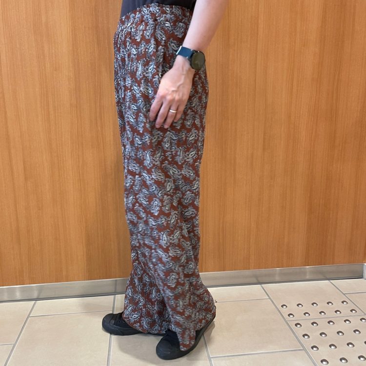 urnis outlet 北広島店のスタッフが、 直接ご対応させて頂きます。 画像だけでは分かりにくい商品の気になる点や、 通信販売も承りますので、 お気軽にご相談下さい♪ 柔らかく、サラッとしたタッチの 穿き心地抜群なイージーパンツ。 ストンと落ちるストレートシルエットで 脚長効果アリで御座います!! オーバーサイズのトップスを 合わせるのがオススメですよ~ 暑い夏も快適&オシャレに 過ごせる1本です。 柄違いも♪