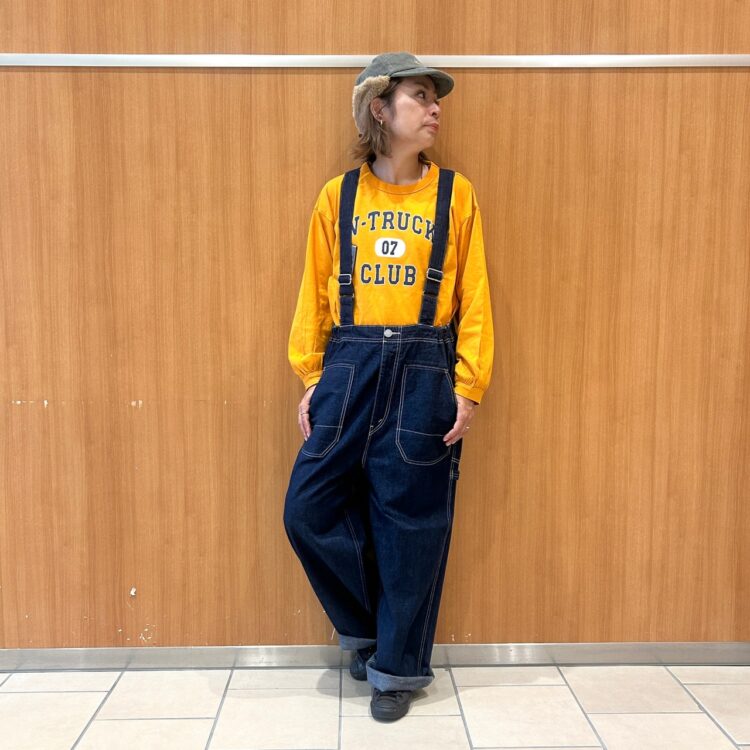 urnis outlet 北広島店のスタッフが、 直接ご対応させて頂きます。 画像だけでは分かりにくい商品の気になる点や、 通信販売も承りますので、 お気軽にご相談下さい♪ 人気のベイカーパンツを デザインソースにしたサロペット。 ロングシーズン穿ける やや中肉なデニム素材を使用しており、 軽い穿き心地で御座います♪ ゆったりとしたオーバーサイズで ゆるっと感が絶妙ですよ♡