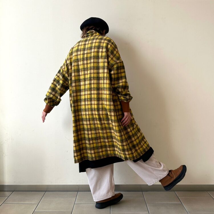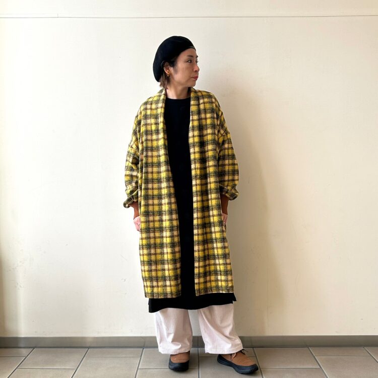 model.161cm le colis/フェイクウールチェックコーディガン No.092-345-3676226 Col.マスタード(着用).アカ.グリーン Size.F Price.¥4,900+税(税込価格¥5,390)