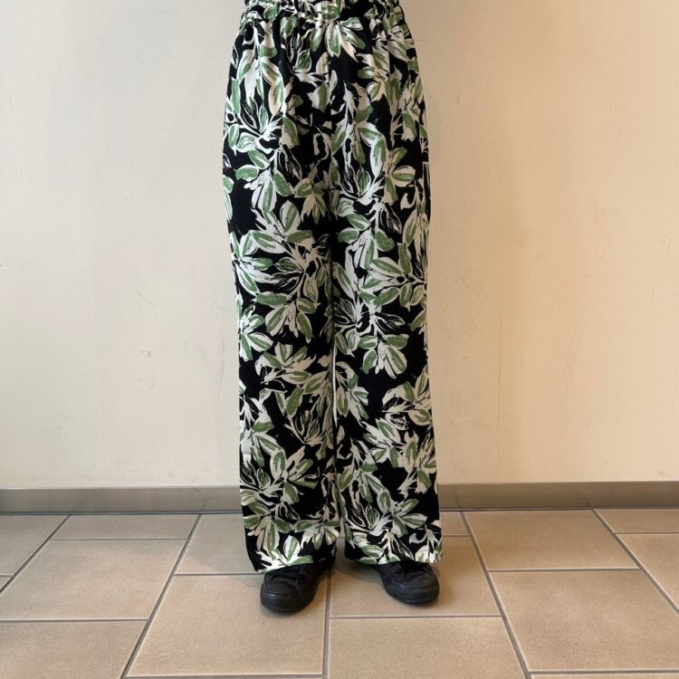 【le colis】 大花ptイージーパンツ No.092-417-4603531 Col.グリーン.ブラック(着用).ブラウン Size.F PRICE¥3,900+税(税込価格¥4,290) 大人な雰囲気の花柄デザインなので カジュアルからキレイめまで 幅広いコーデが楽しめるパンツ。 スルンとした滑らかな 薄手の軽い生地を使用しているので リラックス感のある穿き心地です。 透け防止の裏地付きなので安心して 穿けますよ~! ウエストは総ゴム仕様&紐で 調整可能で御座います!