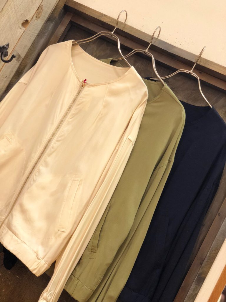 【UV加工ノーカラーブルゾン】 No.083-812-0184223 Col.ベージュ(着用)、カーキ、ネイビー Size.M Price.¥5,900+税→¥3,900+税 【chello】からノーカラーの ブルゾンがブルゾンが入荷しましたー!! 薄手でサラッとした着心地。 レーヨン混なのハリもあり きれい目スタイルにも使えちゃう!!! 袖もボリュームもあり、 女性らしいく着こなせます! しかも、、、