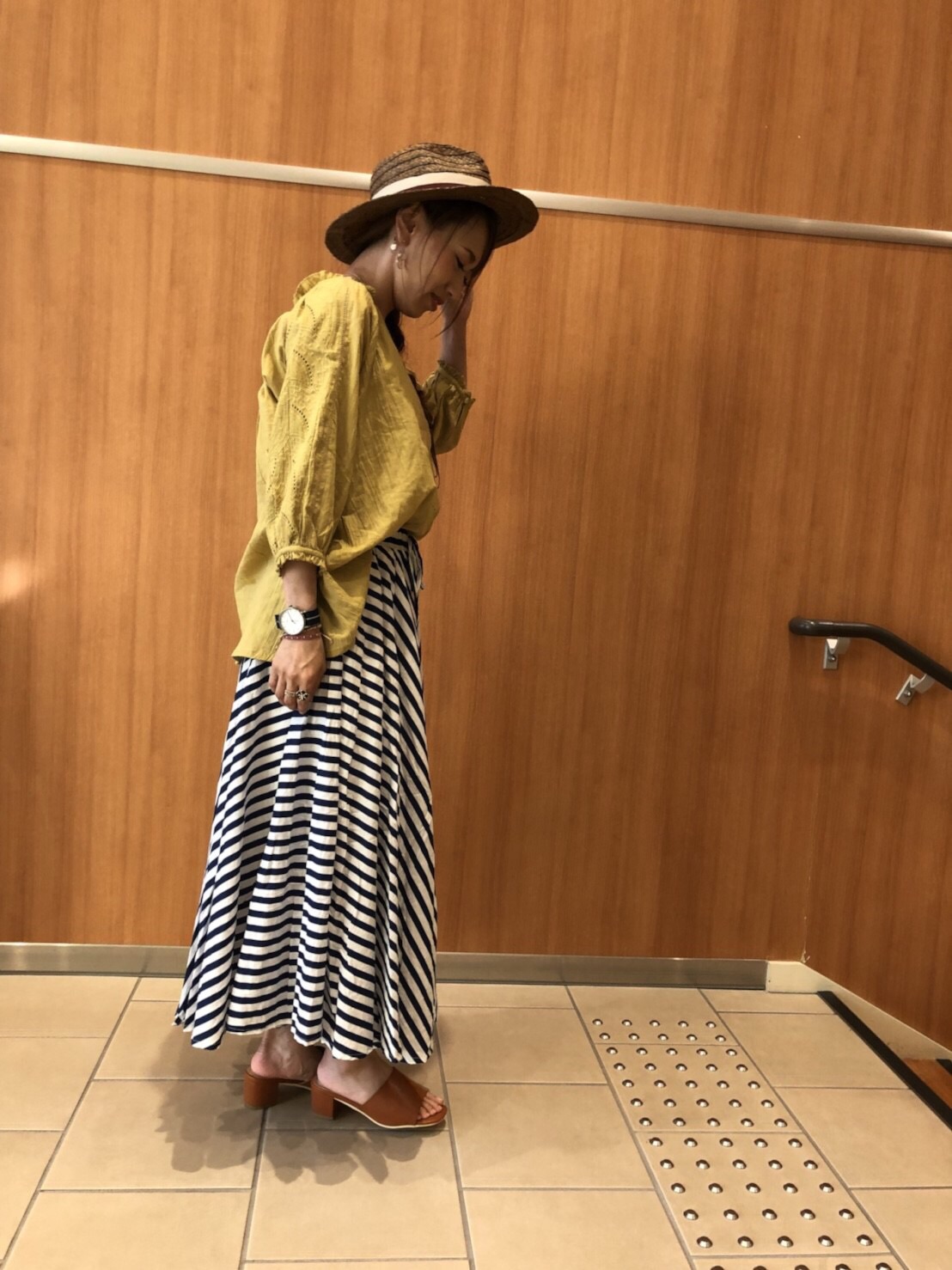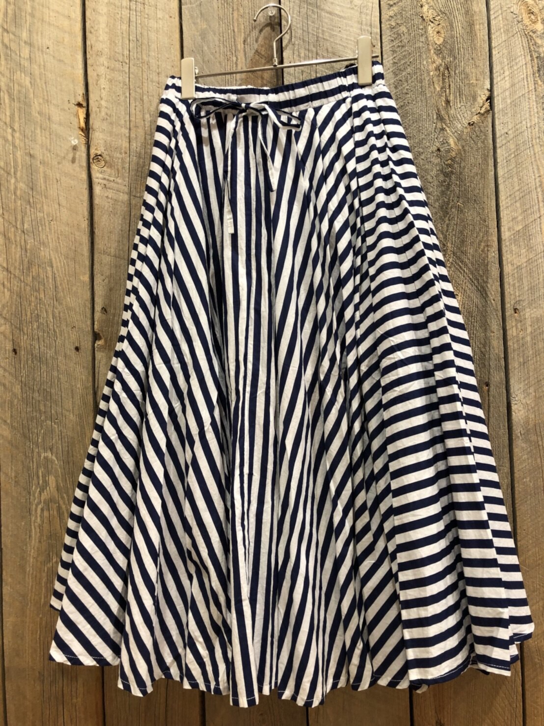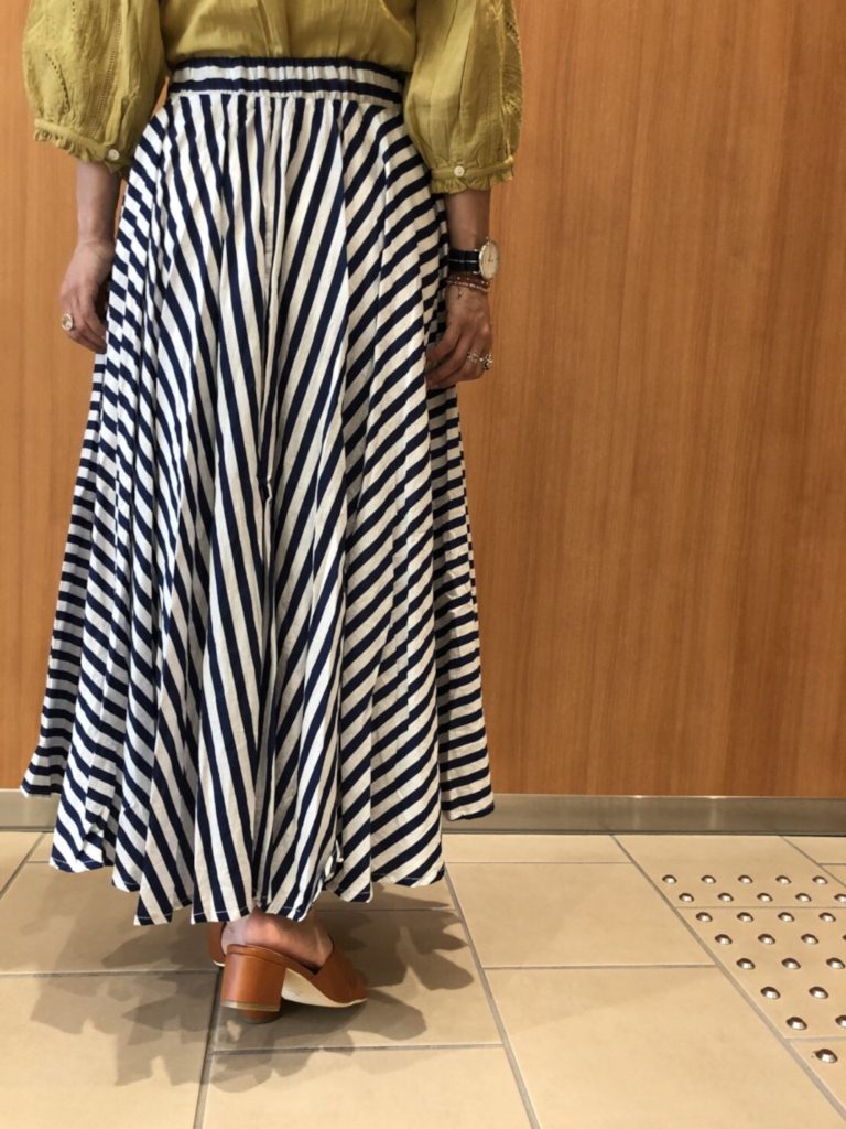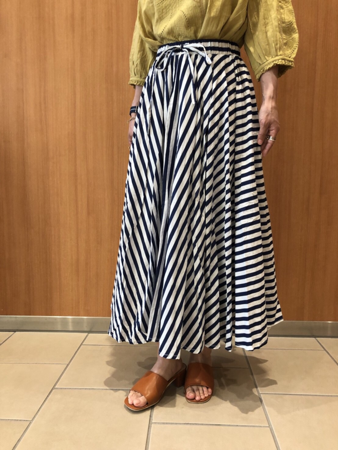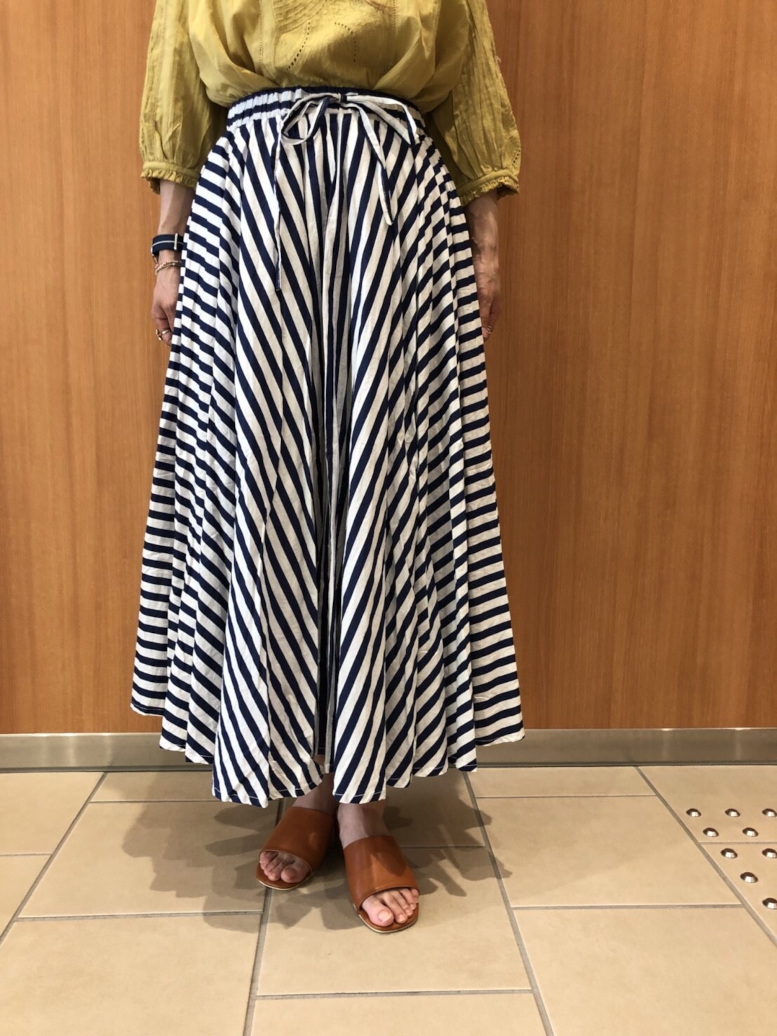 Model. 155cm 一際引き立つ、サーキュラースカート! ボリューム感たっぷりで、ふわりと広がる 美シルエット♪ 今回みたいにカジュアル系の トップスや、綺麗目のブラウスに 合わせて見ても素敵だと思いますよ。 【60キャンブリックストライプサーキュラースカート】 NO.162-821-0170360 Size.F Price. ¥5,900+税 → ¥2,900+税 Col. ネイビーのみ 【60キャンブリックサーキュラースカート】 NO.162-821-0170359 Size.F Price. ¥5,900+税 → ¥2,900+税 Col. アカ、マスタード、ブルー