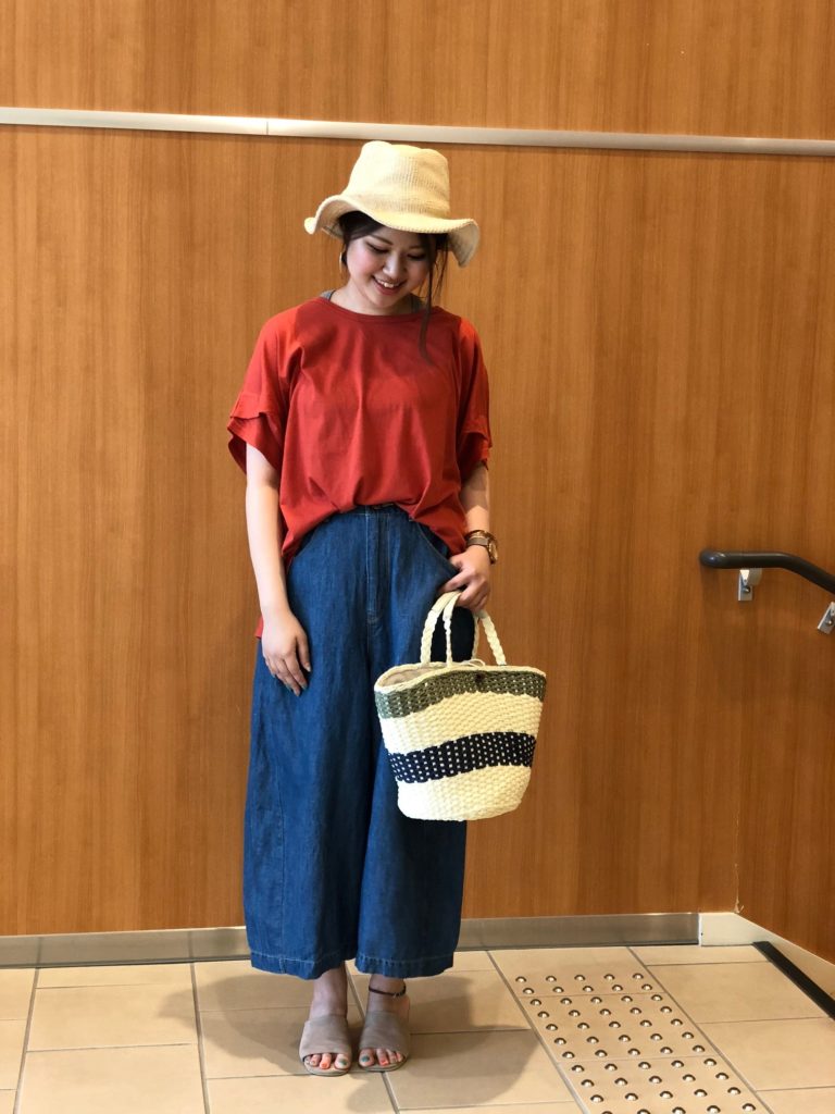【デニムリネンキャンバスパンプキュロット】 No.404-866-0000296 Col.S9(着用)、ワンウォッシュ Size.S,M,L Price.¥7,400+税 大人気cafettyから山ピーおすすめのパンツです♡ 綿麻なので通気性よく、 取り入れるだけで一気に夏らしい印象に!! ガウチョパンツは、足首が見えるので ワイドパンツよりも華奢で女性らしい 雰囲気が演出できます♡ 丸みのあるシルエットが より可愛らしさを引き立てます!