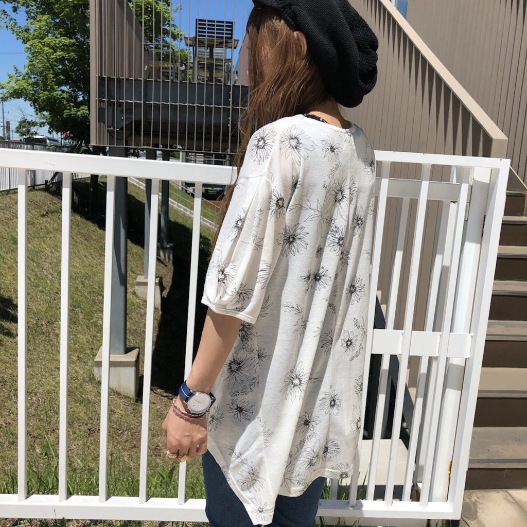 私の大好きなお花柄♡ こちらは、梨地で細かい凸凹が肌に張りつくのを防いでくれる生地の為、 夏に着用するのにピッタリの素材なんです♪