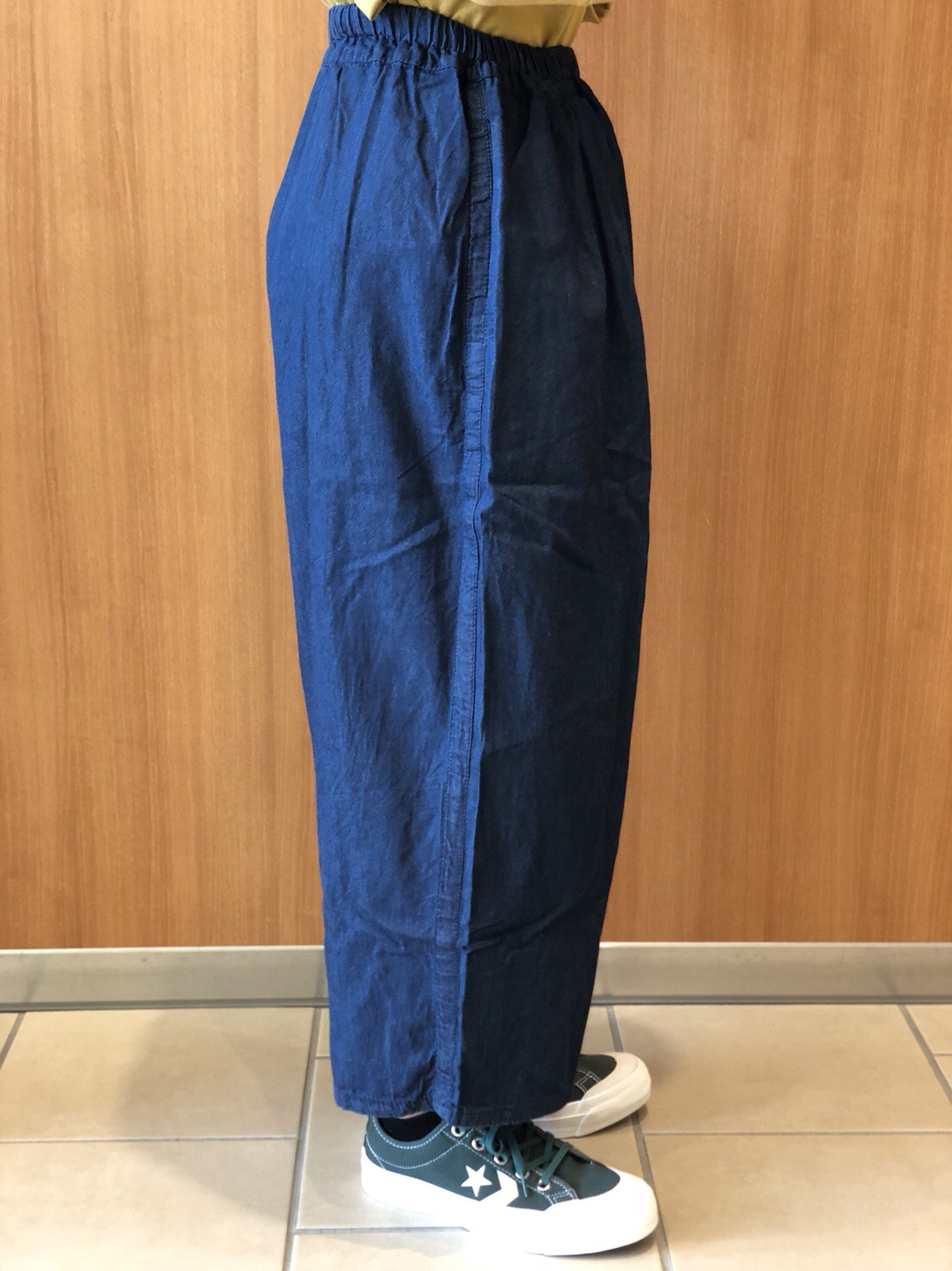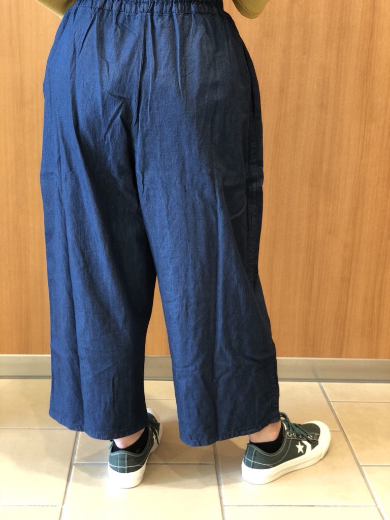 【5ozデニムPT】 No.162-820-0170513 Col.ブルー、ネイビー(着用) Size.F SALE PRICE¥2,900+税 ゆったり感が可愛いデニム♡ 薄く、柔らかいので穿き心地良いです! 夏にピッタリですね♪ ウエストはゴムなので安心!! 靴はスニーカーでもサンダルでも◎