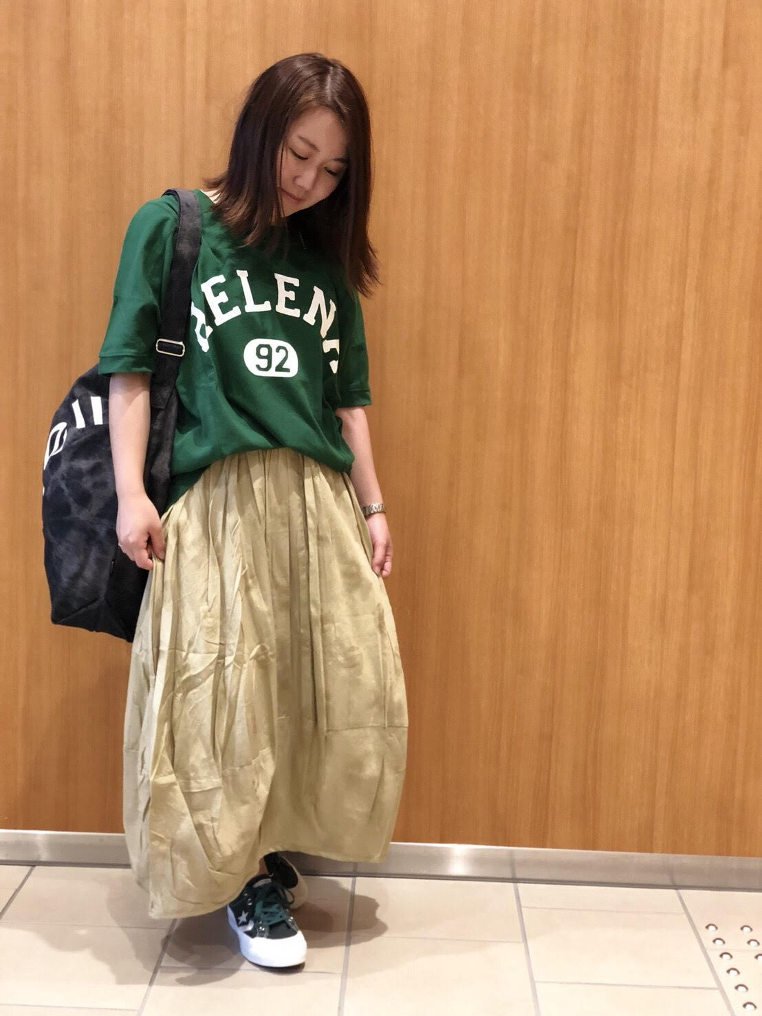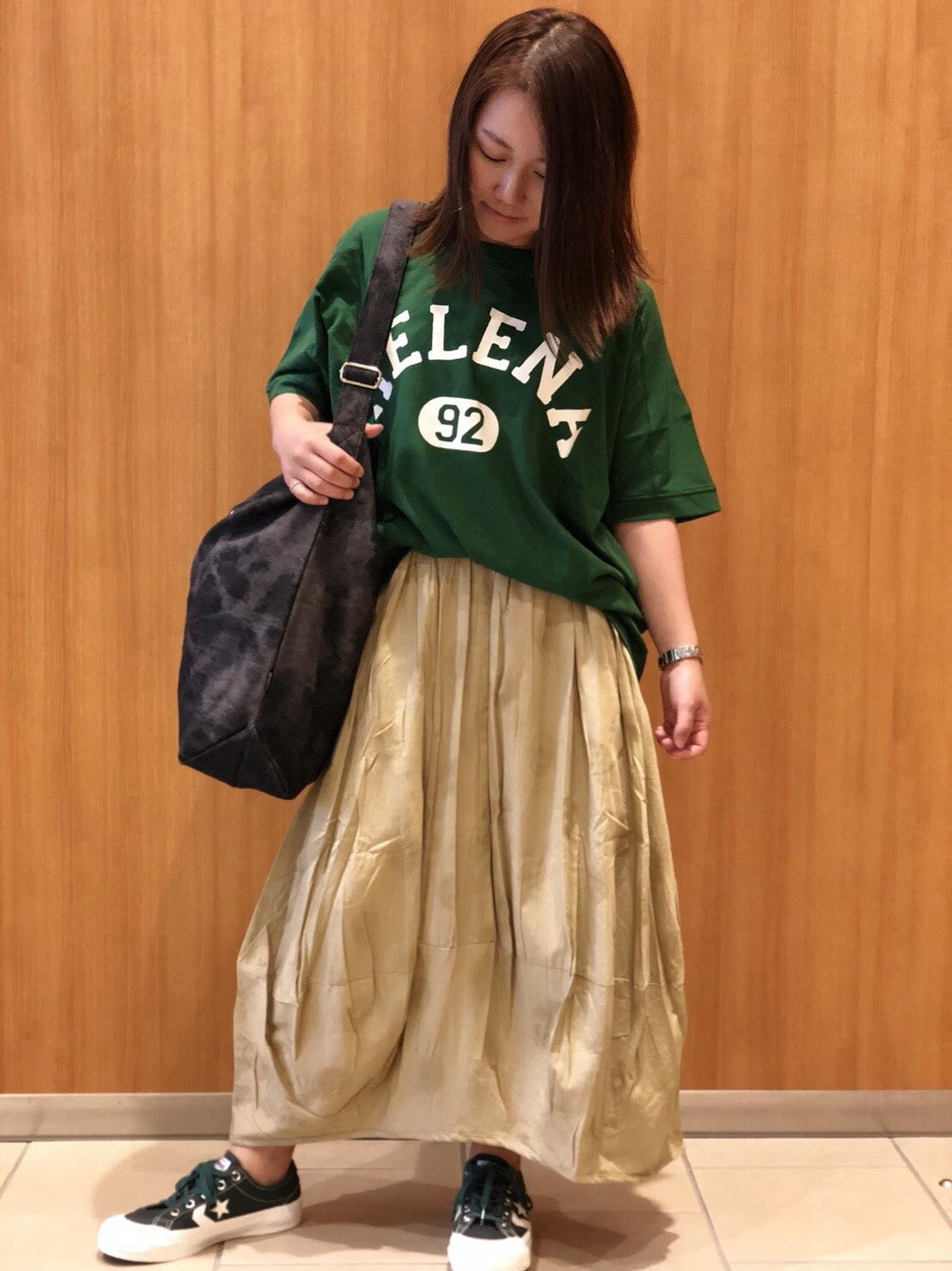 【天竺半袖チュニック】 No.120-831-0081601 Col.オフシロ、マスタード、アカ、グリーン(着用)、ネイビー Size.F SALE PRICE¥1,900+税 こちらのTシャツはゆったりサイズ!! 少し袖が長めなので 二の腕を出したくない!という方に オススメです♪ ロゴが可愛いですよ♡ デニムでもスカートでも合わせやすい アイテムになっております!! 今回はスカートに合わせてみました♪ お色は、、、