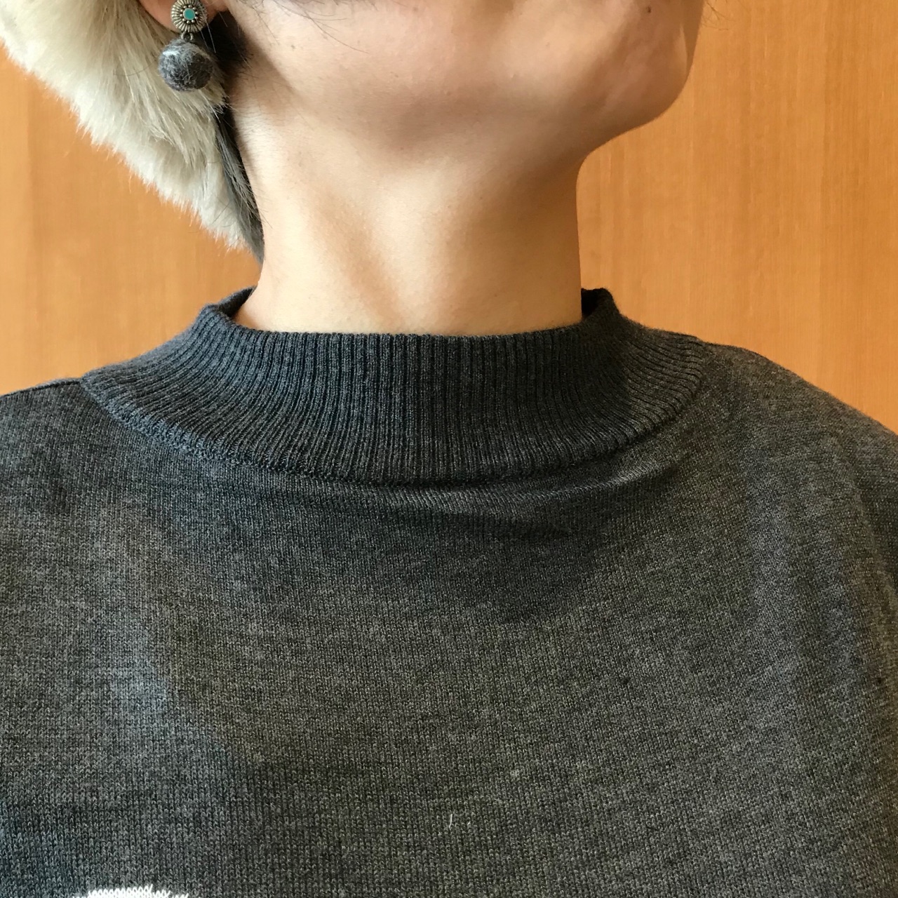 model:H161cm No.160-836-0P58699 Size.F Col.チャコール(着用).トップグレー.ベージュ OUTLET PRICE.¥2,900+税 今シーズンも引き続き人気の ドットアイテム!! クルーネックとタートルネックの中間の モックネックになっているので ちょっとレトロで大人な雰囲気が ノンフレのお気に入りポイントです☆