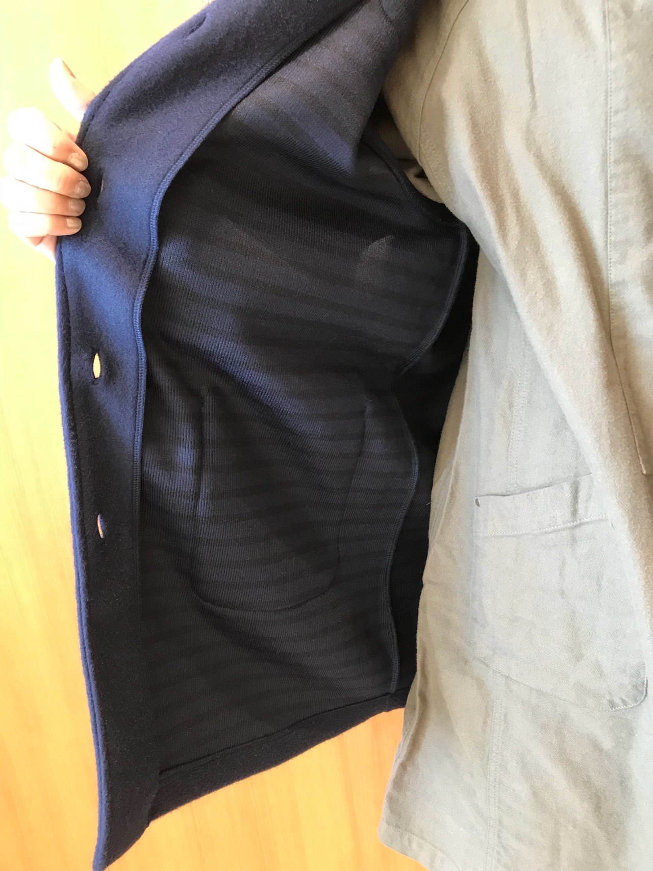 【フーデットロングコート】 No.160-840-0T68510 Size.L Col.ネイビー(着用). カーキ.ブルー PRICE¥6,900+税