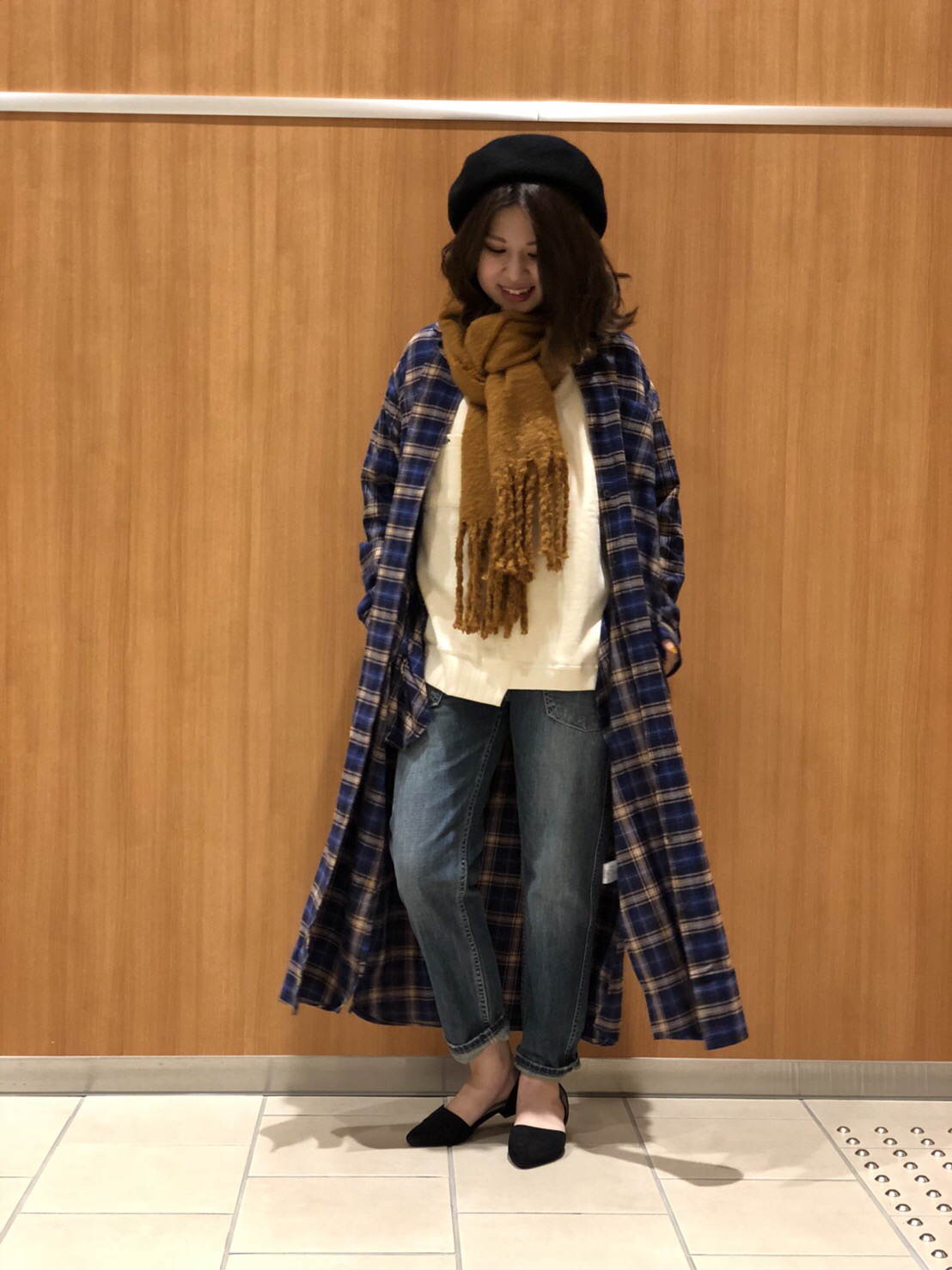 【起毛コットンシャツ先染めチェック】 No. 083-842-0184719 Col.ネイビー(着用)、アカ、グリーン Size. M OUTLET PRICE ¥3,900+税 この時期絶対欲しい! チェックシャツワンピース! そして、、何よりこの丈感♡ わたしはロング丈をこよなく愛してます。笑 体型カバーはもちろんですが、 総柄のワンピースは、背の小さい方でも 縦長さんに見えるのでオススメ♪ 起毛がほっこりと冬らしく、、、 コットンなのでお手入れも楽チン! 今回は羽織りとして着用しましたが 前を閉めてワンピースとして着て ワッフル地のレギンス合わせが トレンドっぽくて◎!