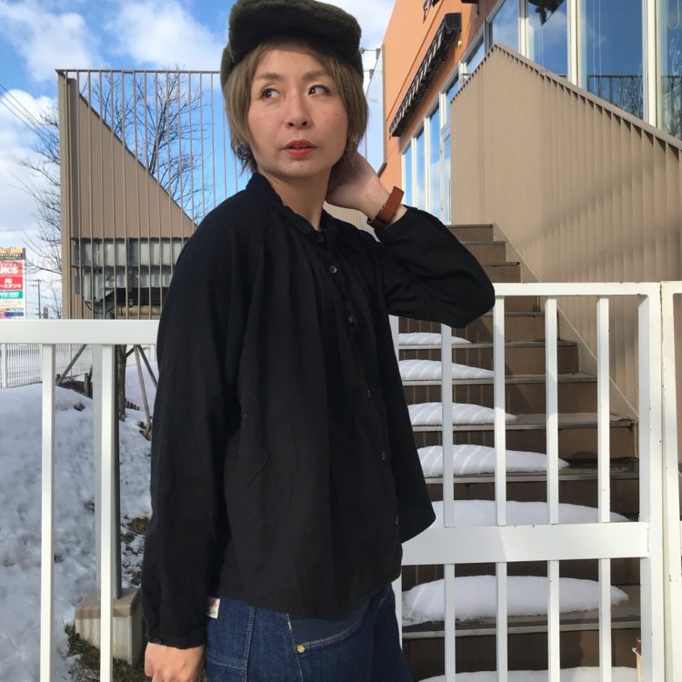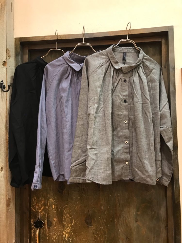 薄手で柔らかい生地なので ニットやスウェットアイテムの中に 重ね着しやすいですよ~ ちょこっと見える小さな衿が アクセントになってくれます! そして、見た目の可愛さだけじゃなく 動きやすさにもこだわって作られており、 首回りにはギャザーを入れて、 袖はラグランスリーブになっています☆ フンワリした綺麗なシルエットなので 1枚で着ても◎ こちらも3色展開です!