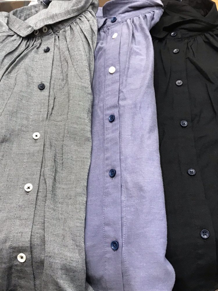 model:H161cm 【変形衿フンワリシャツ】 No.160-850-0T98888 Size.L Col.チャコール(着用).ブルー.グレー PRICE¥3,900+税 今回入荷したノーザントラックの 新作アイテムの中でも特に ノンフレ激推しアイテムです♡ アシンメトリーなデザインの衿と、 上下で異なった色のボタン使いが さり気ないけど遊び心があって 一目惚れしました♪
