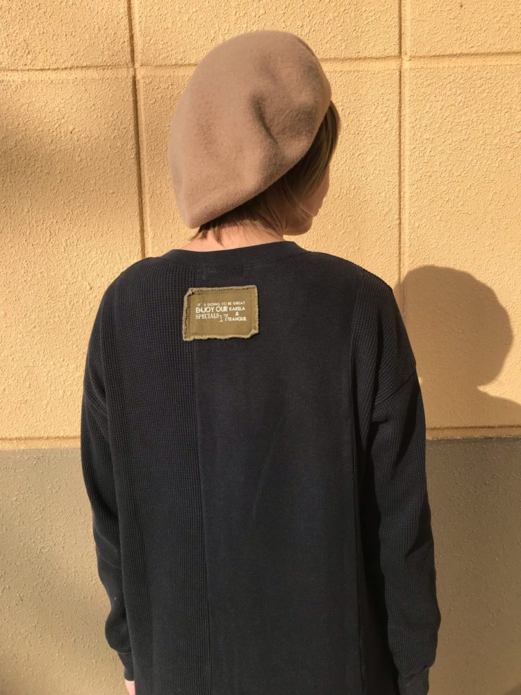 model:H161cm 【裏起毛ワッフル異素材組合せヘンリー】 No.015-852-1809153 Size.F Col.カーキ(着用).ブラック.オートミール OUTLET PRICE¥3,900+税 続いては異素材組み合わせの ヘンリーネックです! 身頃→ふわっとした裏起毛素材