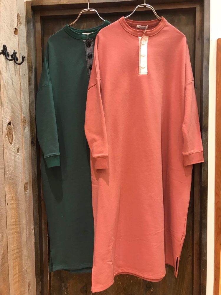 model:H161cm 【裏毛ヘンリーネックワンピース】 No.162-903-0181372 Size.F Col.グリーン(着用).ブラック.グレー オートミール.テラコッタ OUTLET PRICE¥3,900+税 こちらはルピリアの新作アイテム、 ヘンリーネックワンピース☆ 大きなボタンと異素材で切り替えた ヘンリーネックデザインがポイント!
