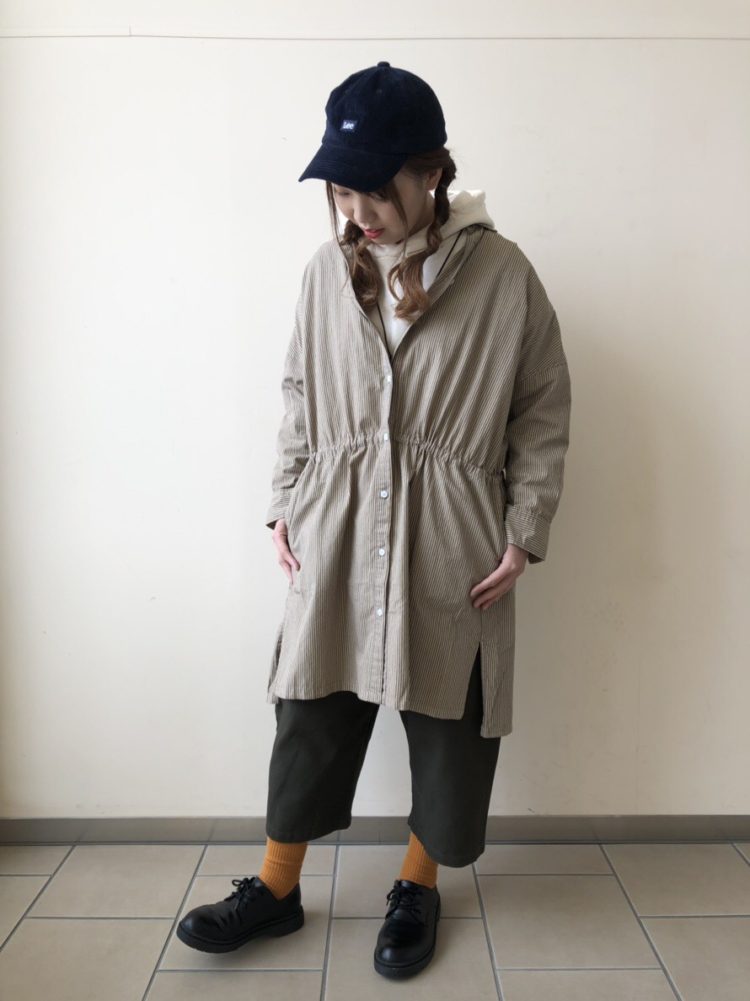 model:H160cm 【前開きOP長袖】 No.129-852-1069688 Size.F Col.グレー、ベージュ(着用)、マスタード、ブルー OUTLET PRICE¥3,900+税 パーカーを中に重ねて着ても ボリュームが出過ぎず、 綺麗なシルエットで着られますよ♪ チェック柄・ストライプ柄どちらも ウエスト部分は紐で調整する事が出来ます!
