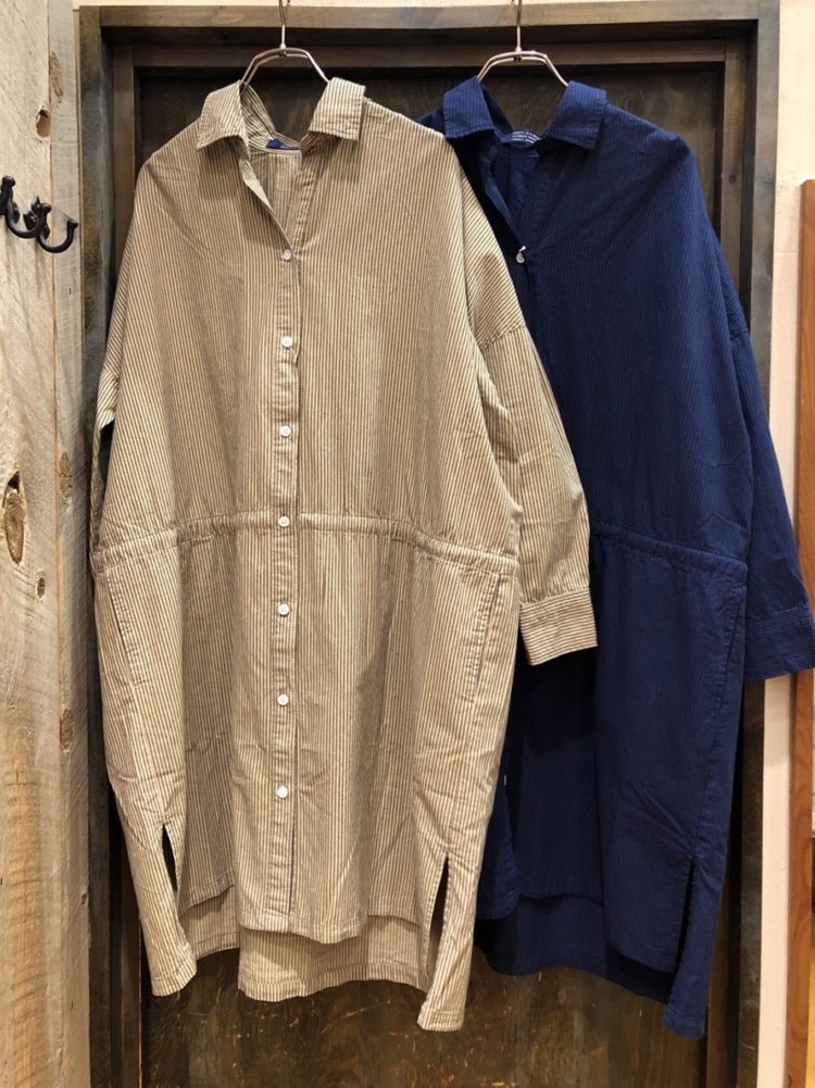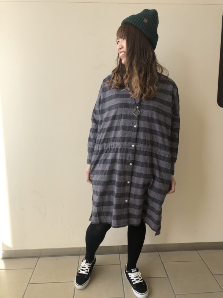 ストライプ柄も御座います♪♪ 先程はワンピースとして着用しましたが、 ゆったりめなので羽織りとしても コーディネートしてみました!!