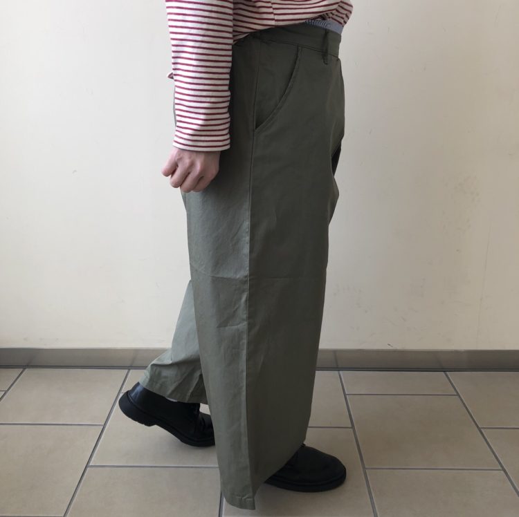 model:H160cm 【フロントタックワイドパンツ】 No.160-905-0PP9091 Size.M.L Col.ベージュ、カーキ(着用) PRICE¥4,900+税 パリッとしたハリのある生地 &フロントにタック入りなので カジュアルになり過ぎず キレイめにも使えるアイテムです! ちなみにウエスト部分は ストライプ柄になっているので トップスをinしても◎です!