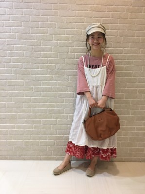 白のキャミワンピに赤を、プラスして可愛らしく。