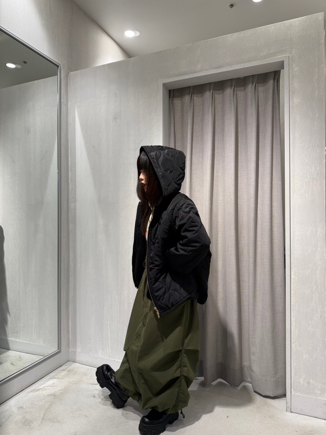 裾のドロストコードで丸みを付けられます◎