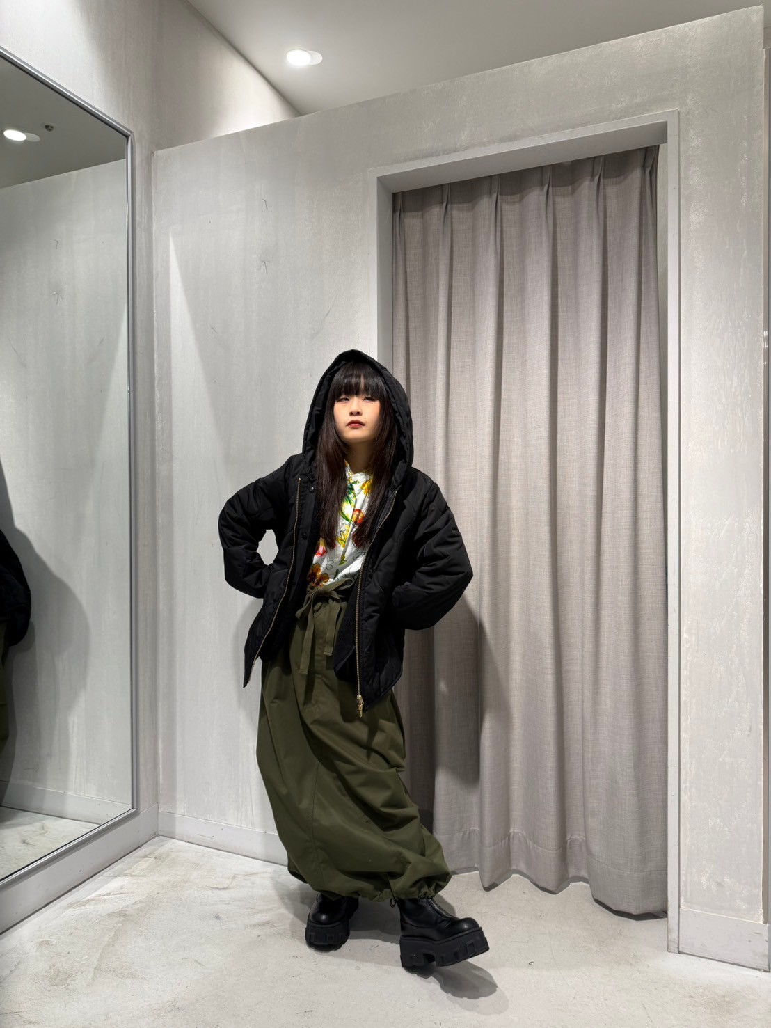 コクーンスカートでカジュアル感をプラス