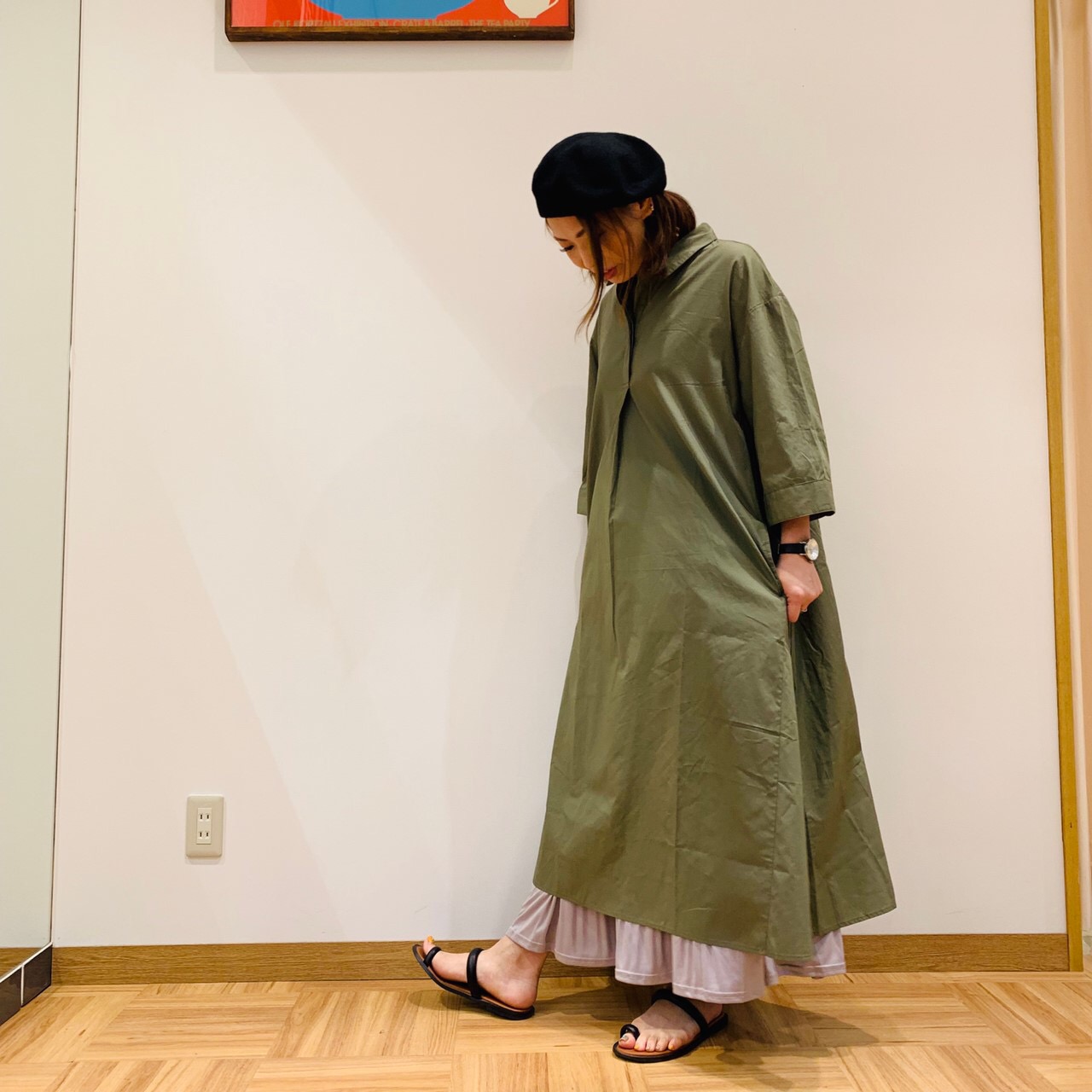 張り感のある生地で透け感もなく1枚でバサッと着れます!