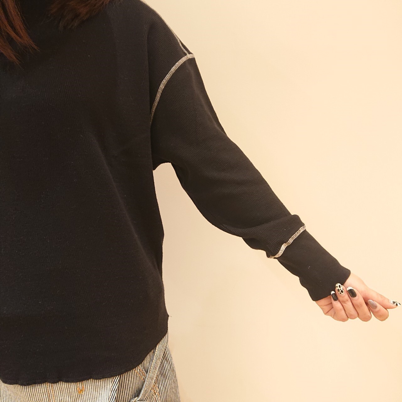 KAKELAならではの古着のようなビンテージ感が感じられるトップスです。