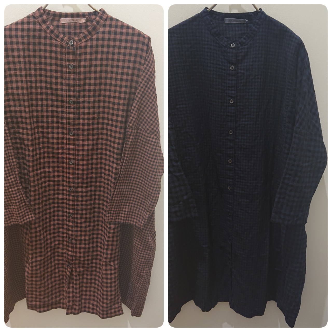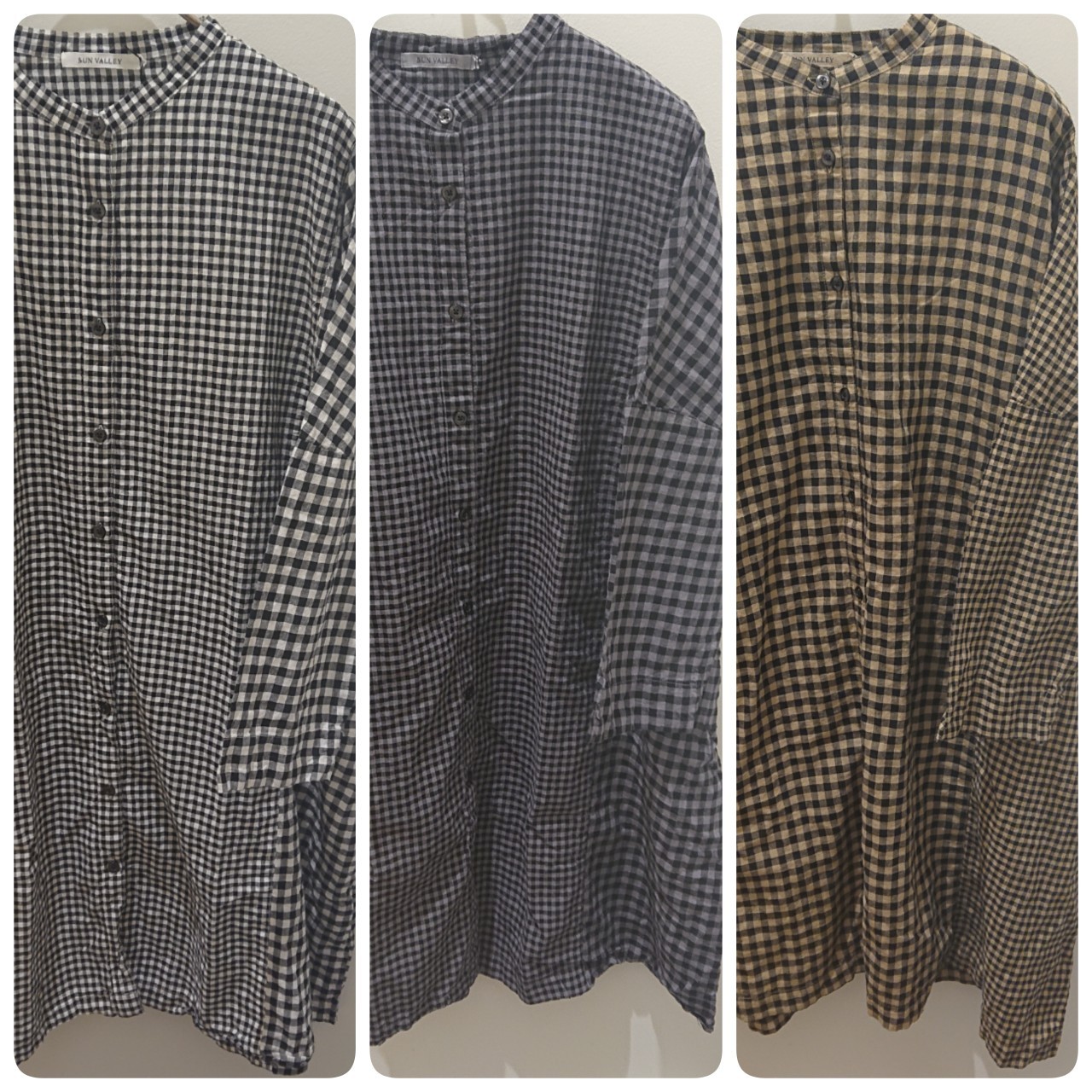 別注綿麻ギンガムチェック日本製品染ワイドシャツチュニック