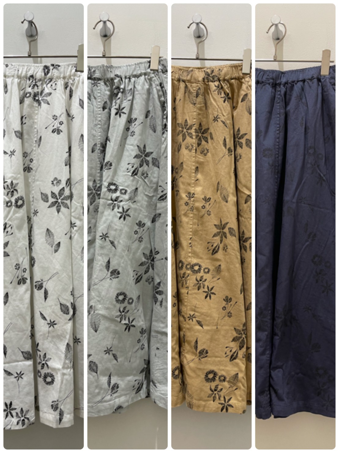 綿ウール綾織総柄プリントオーバーダイフレアスカート