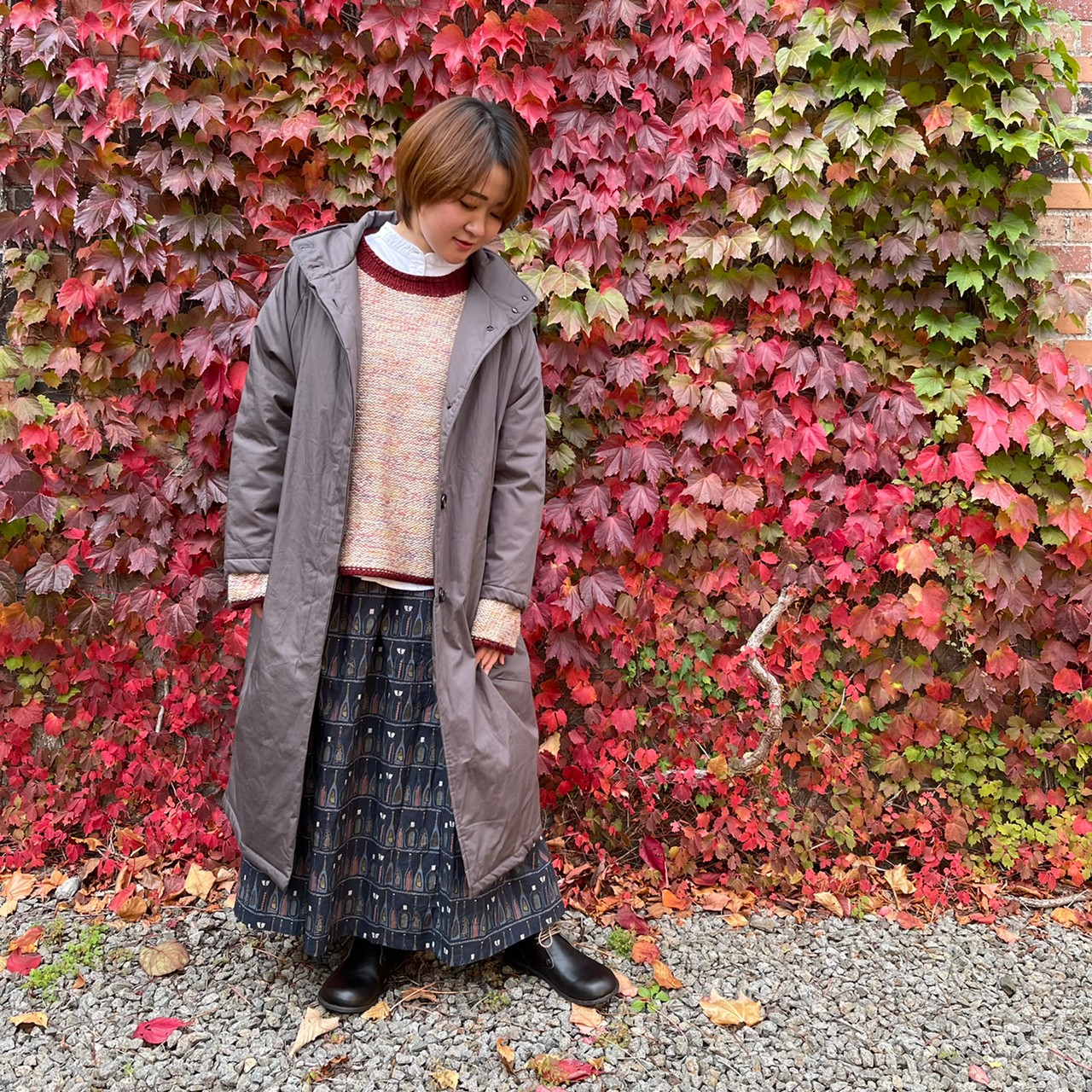 『etreアウター×カリネの柄を取り入れたナチュラルコーデ』です。
