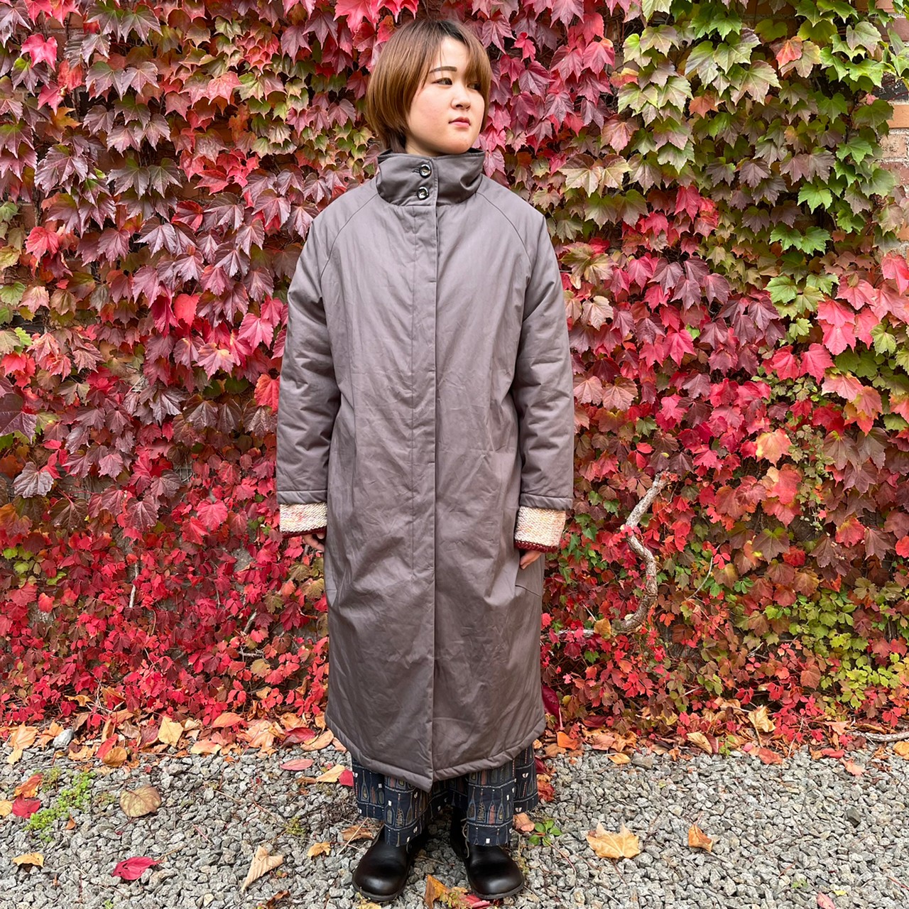 綿ツイル中綿スタンダードネックコクーンコート