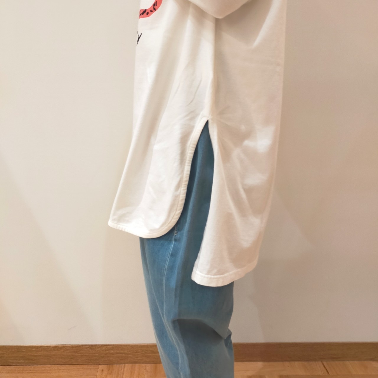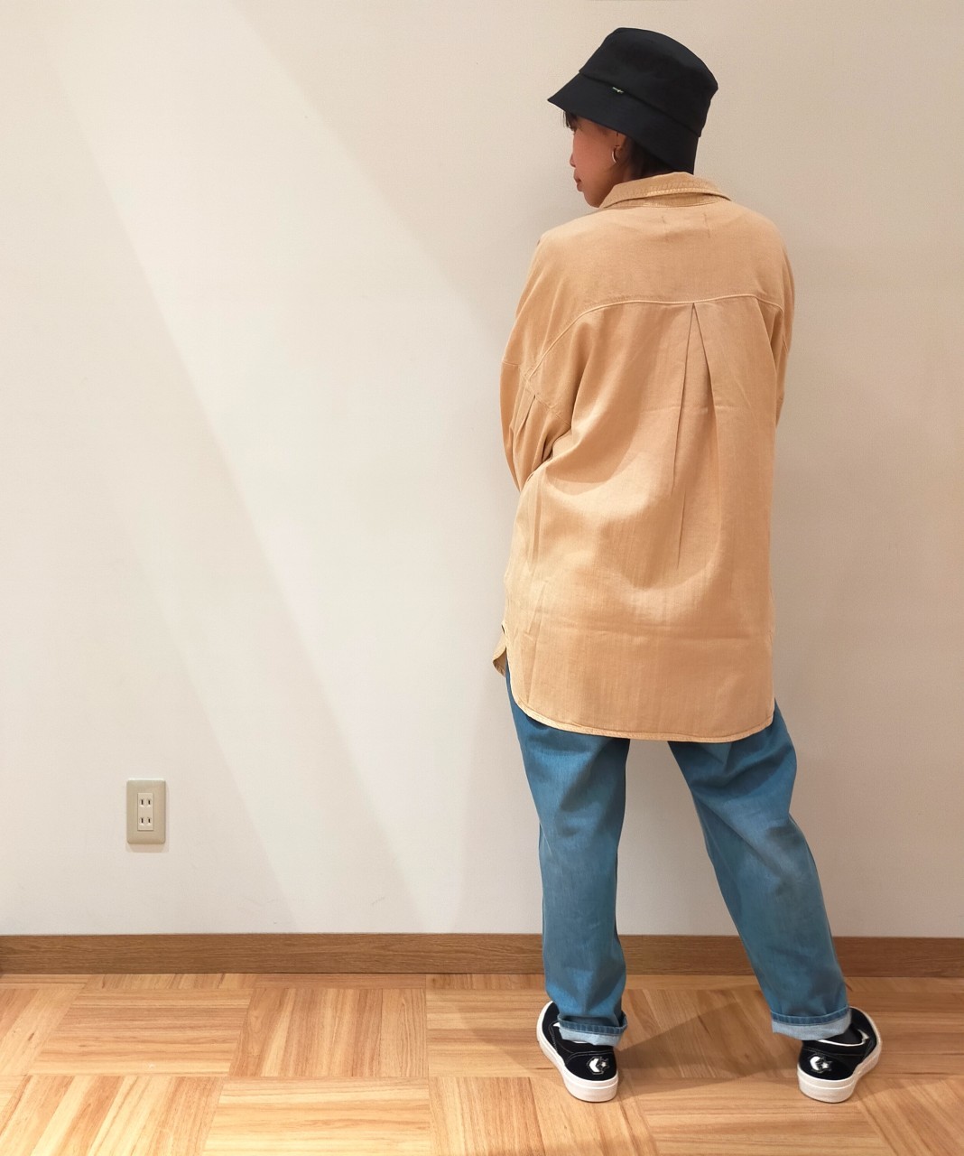 程よいルーズさで抜け感を出し、オーバーサイズで華奢見せを。