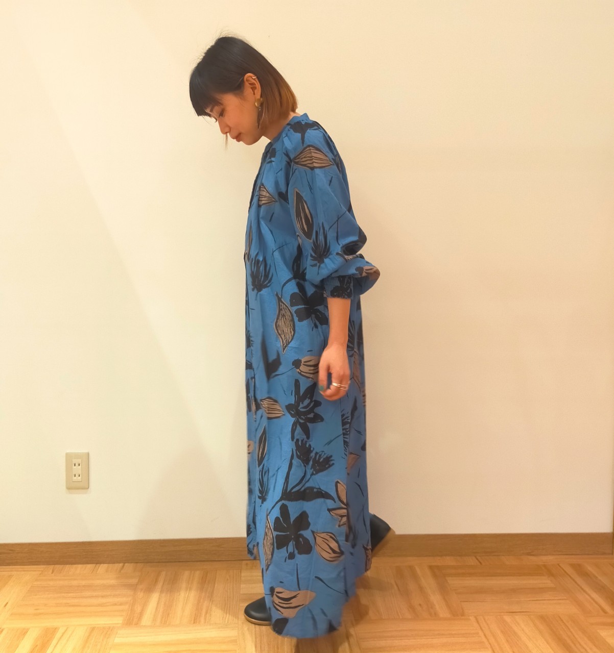 キャンブリックワンカラーフラワープリント比翼開きワンピース