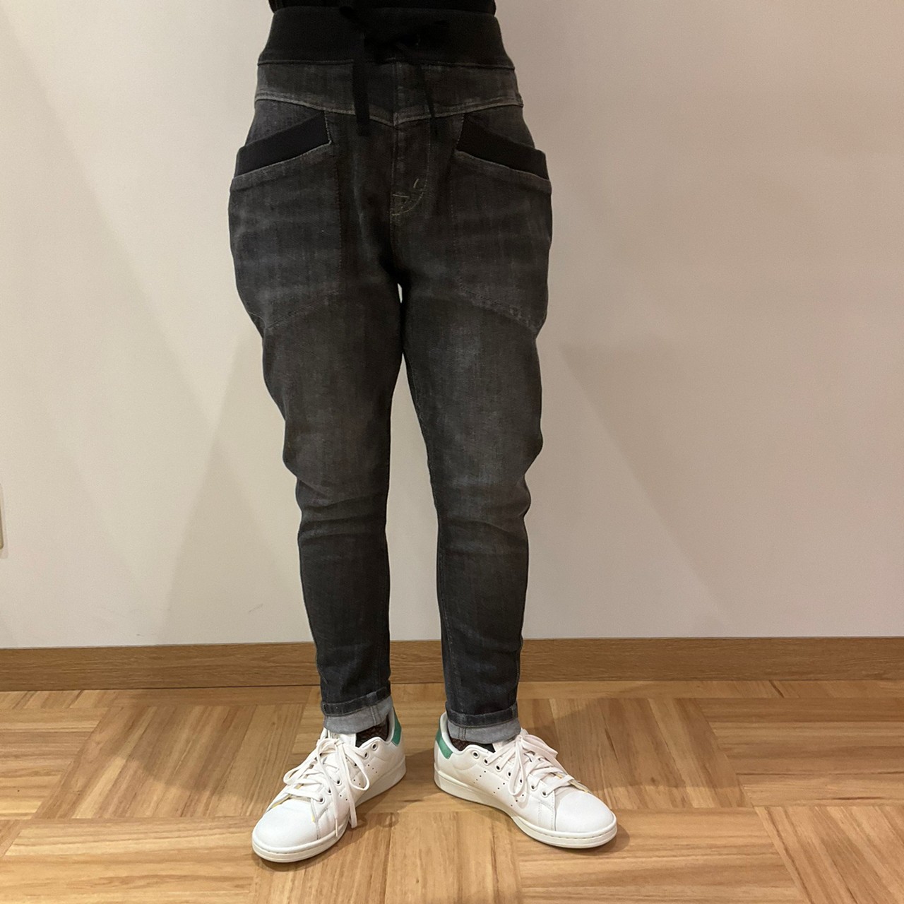 腰に丸みがあり、裾に向かって急激にテーパードなシルエットでこなれ感抜群!