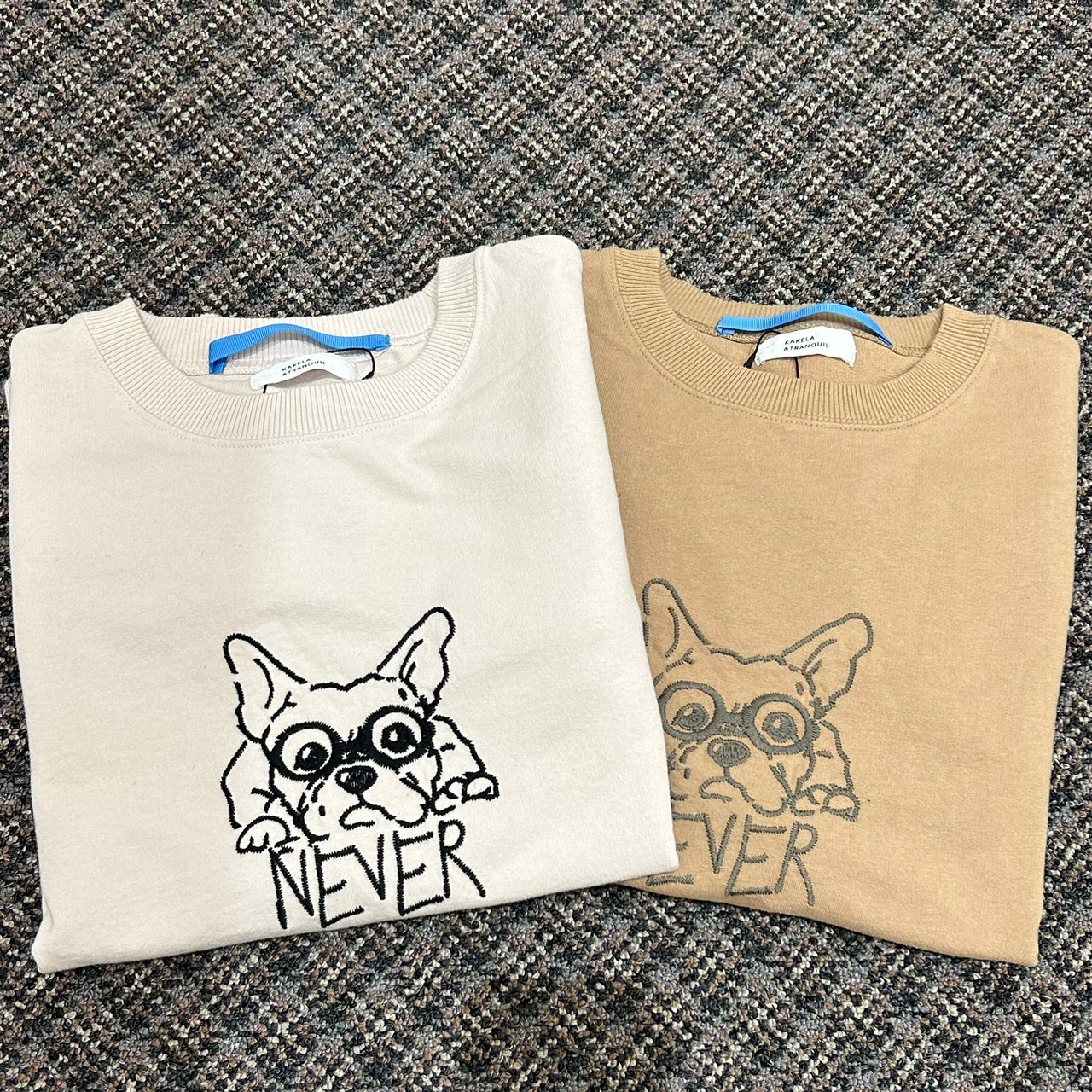 胸元の可愛いフレンチブルの刺繍が目を惹くプルオーバー!