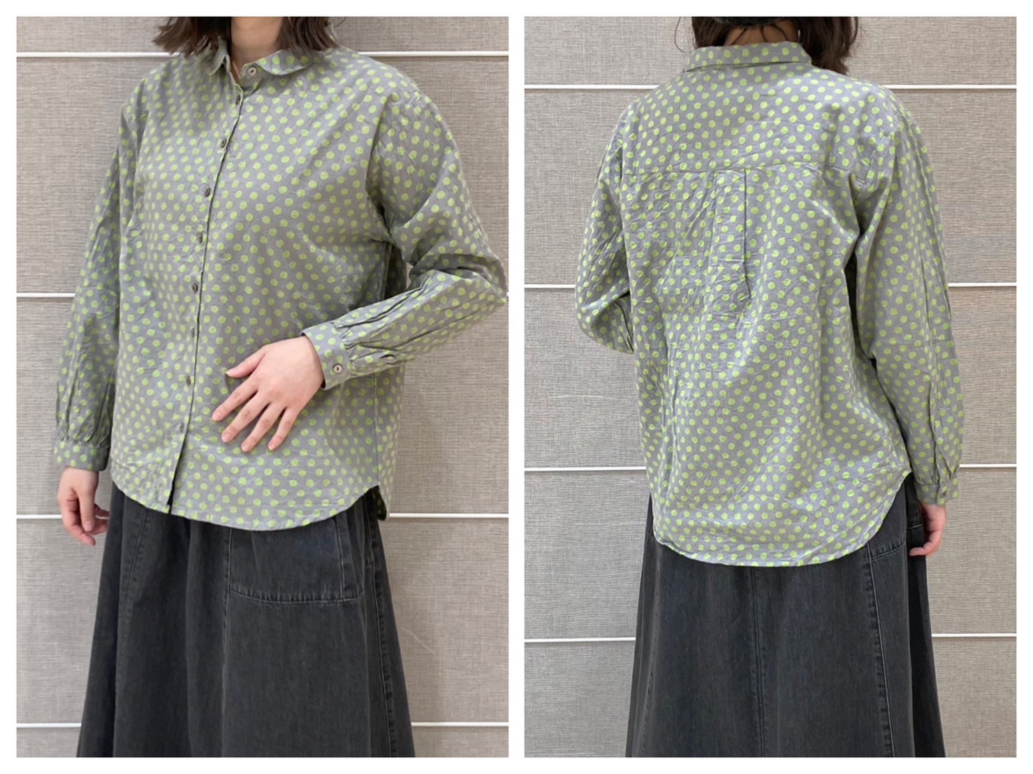 一枚でも重ね着でも合わせやすい幅のドットシャツ●○●○