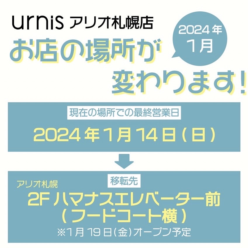 2019年入社。urnis発寒店→urnisアリオ札幌店。暇さえあればお菓子を作る人。コーディネートのお悩み相談、お気軽にお声がけください♪