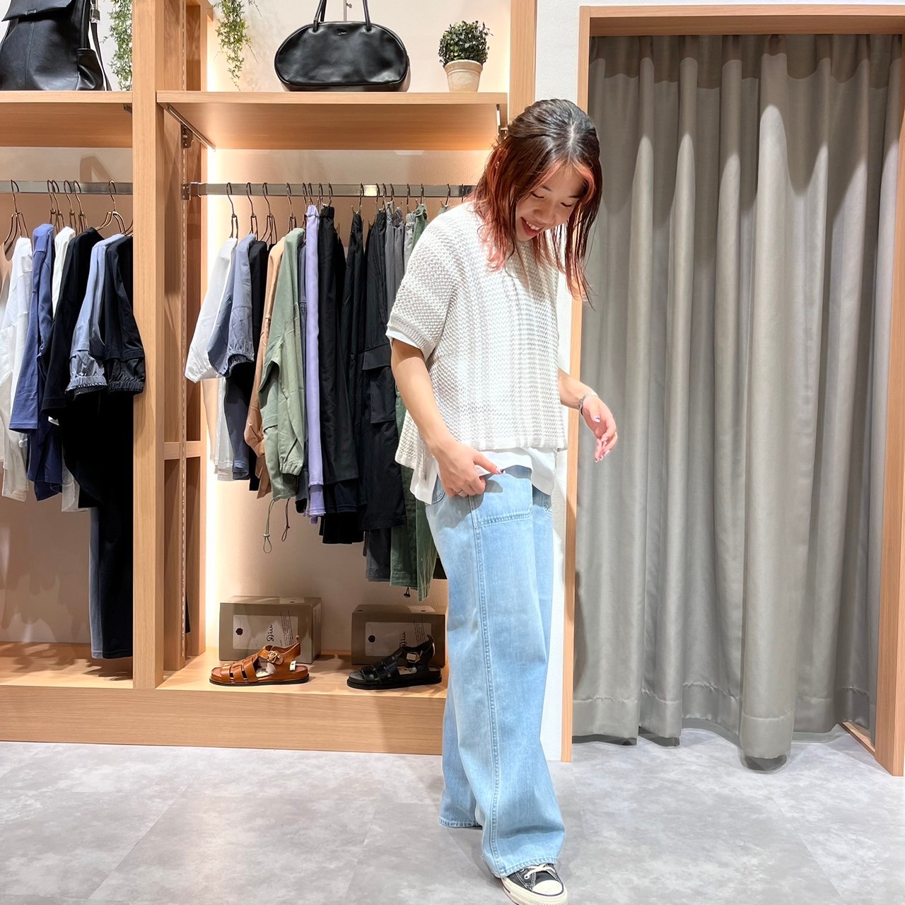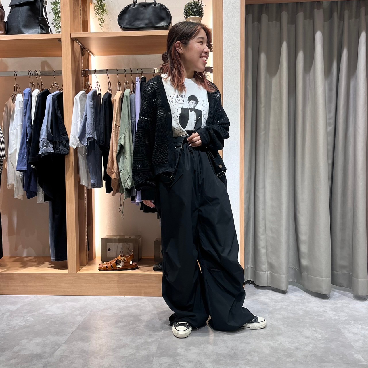 クロップド丈で、ワイドシルエットのボトムと合わせるのがおすすめです!