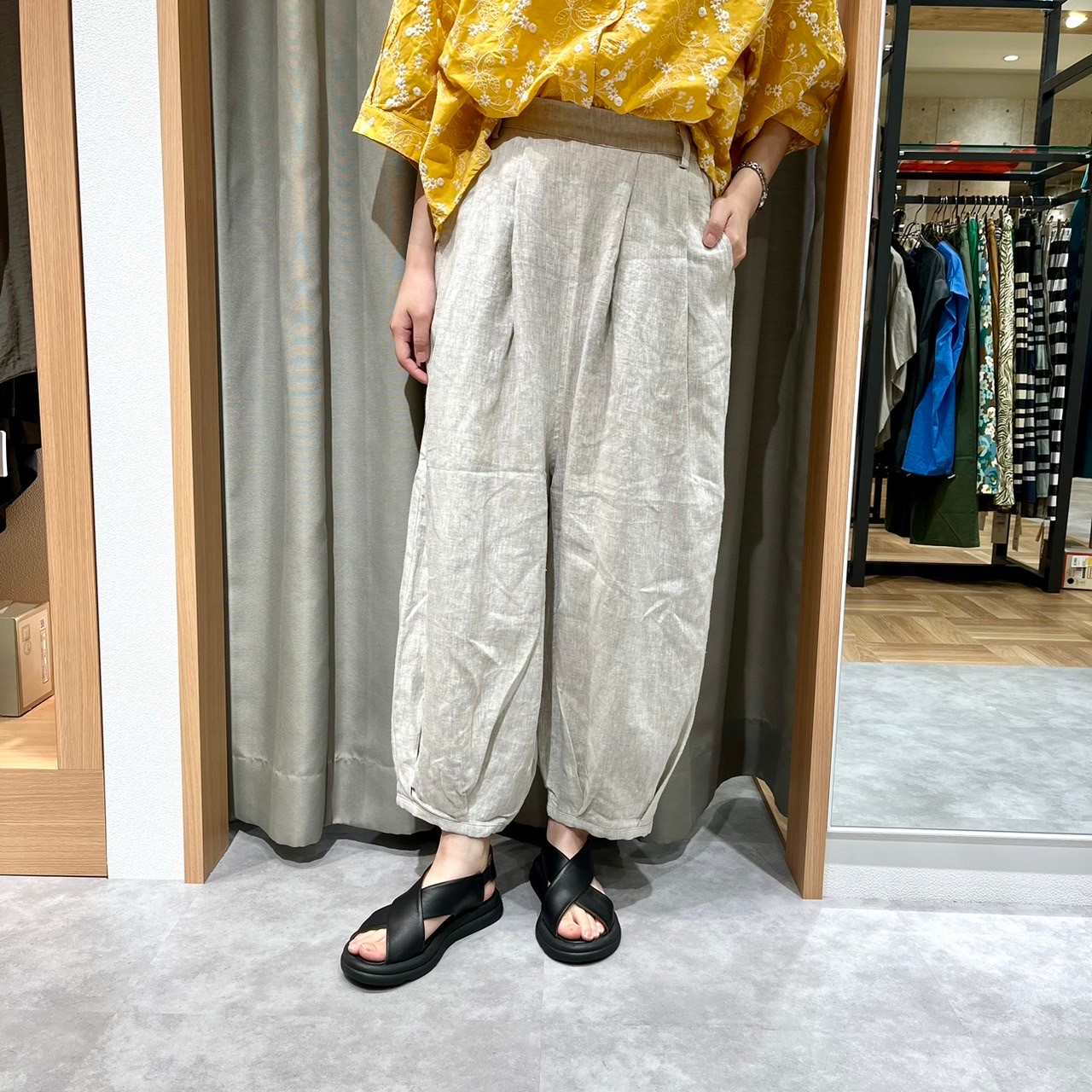 合わせたボトムスは【co;ill nine(コイルナイン)】のリネンバルーンパンツ。
