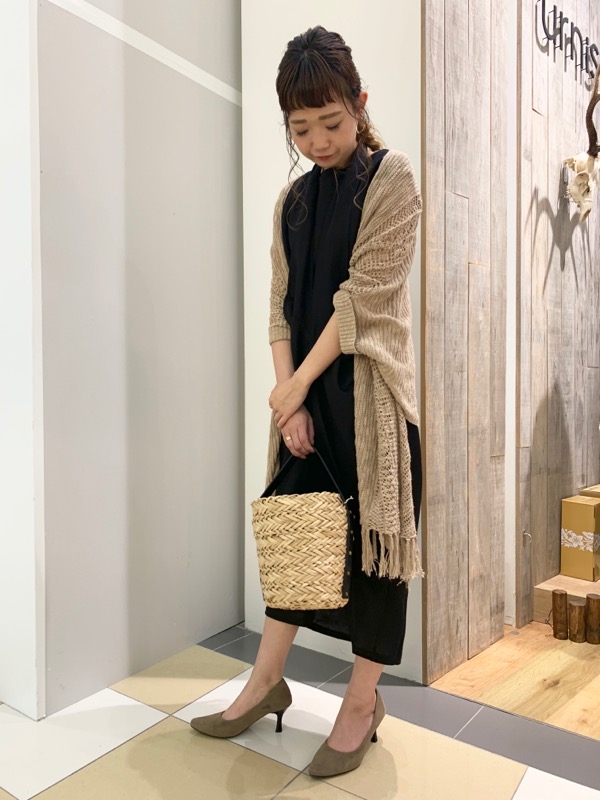 小物はブラウン系を差して