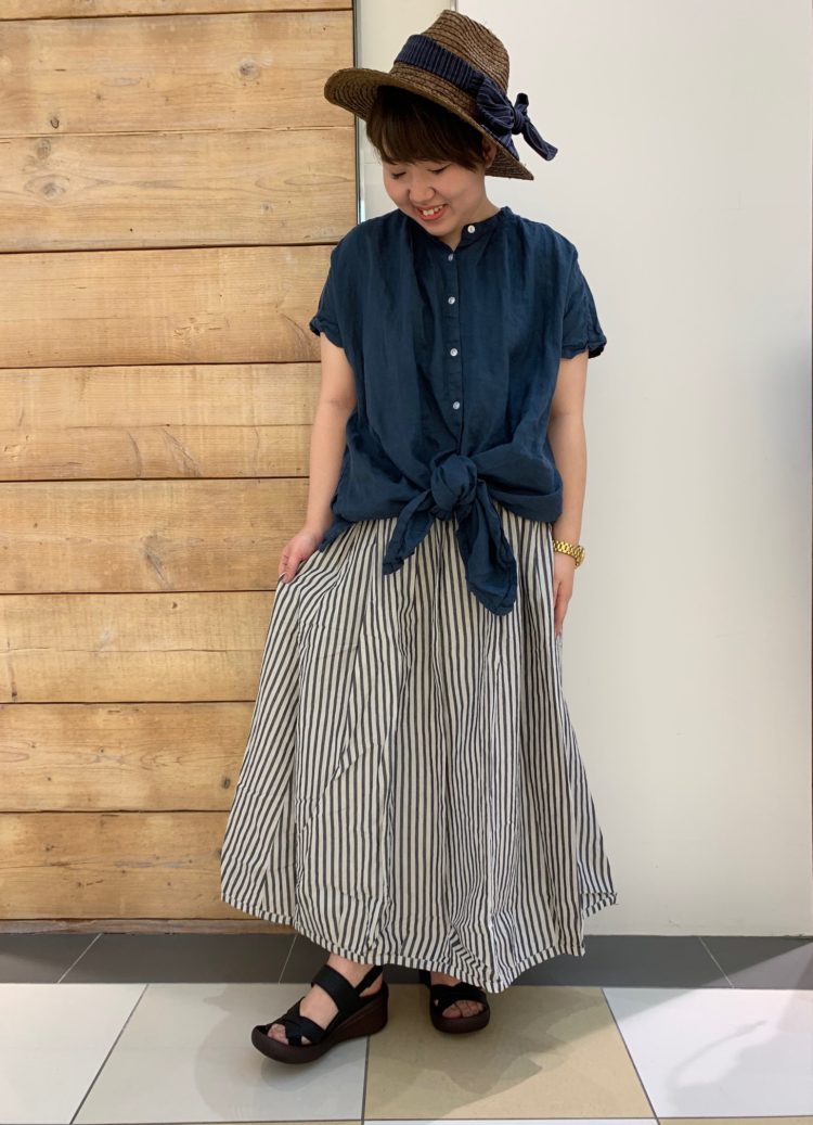 ・「ブルーネイビーのシャツワンピース×スカートで大人ナチュラルコーデ。」