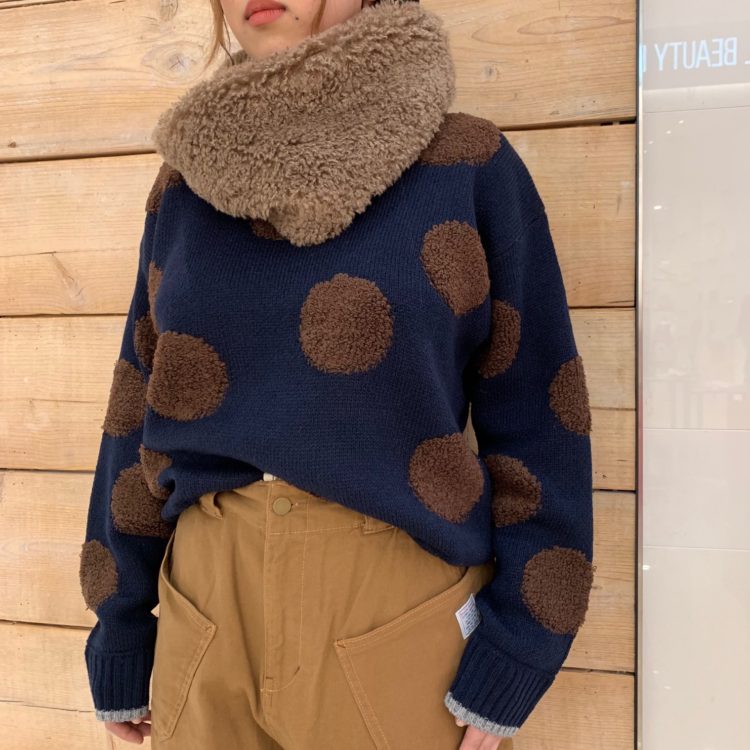 ドット柄ニットをチョイス。