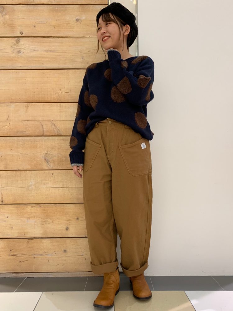 温かみのあるコーデにしました。