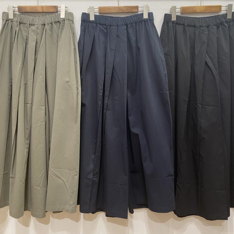 落ち感のある滑らかな風合いのコットンレーヨンを使用し大人っぽいパンツです。ウエストは総ゴム仕様でストレスフリー♪