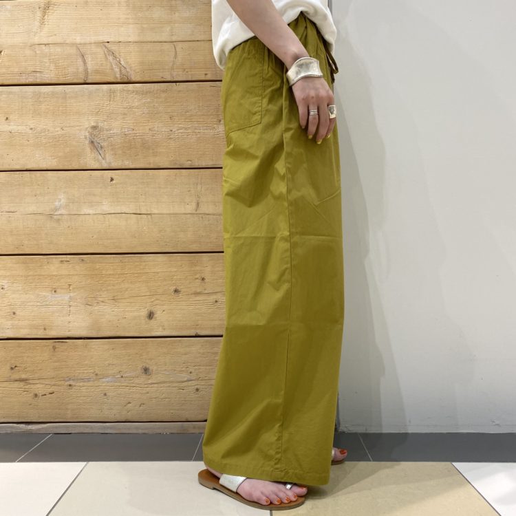 程よいハリ感が高見えするタイプライター生地のサラッとしたパンツです。ワイドシルエットでラインを拾わずトレンド感もプラス◎ウエストはドロストコードなのでお好きなフィット感にして頂けます♪総ゴムなのでストレスフリーです◎