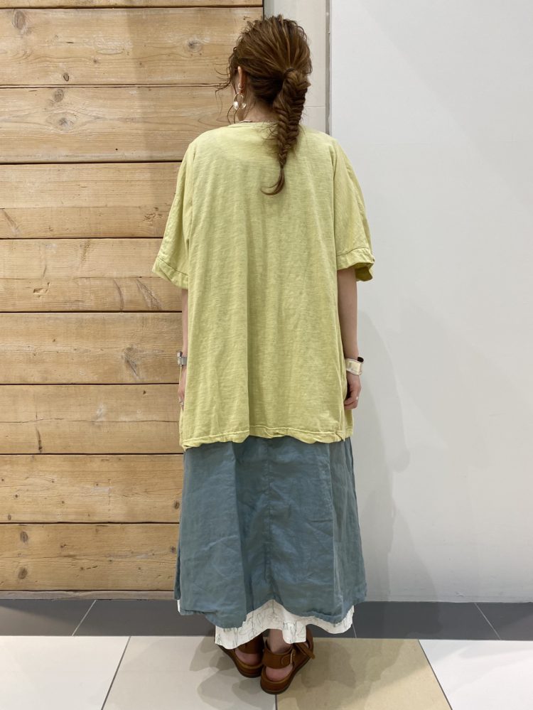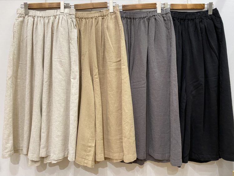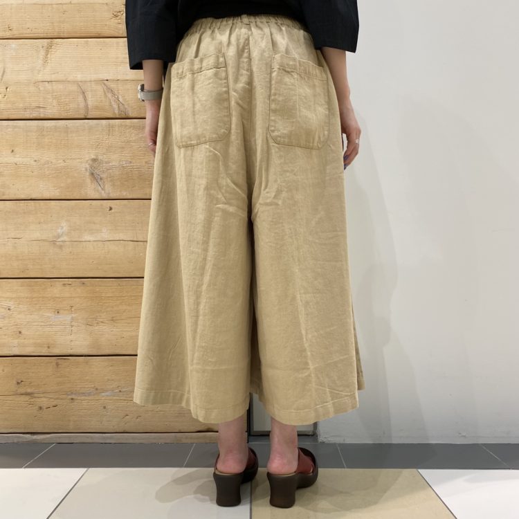 どんなトップスでも合わせやすいボトムスなので、夏らしくTシャツや透け感のあるボイルシャツなどでも楽しめそうです♪