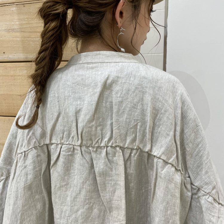 ゆったりした身頃のリネンシャツ。