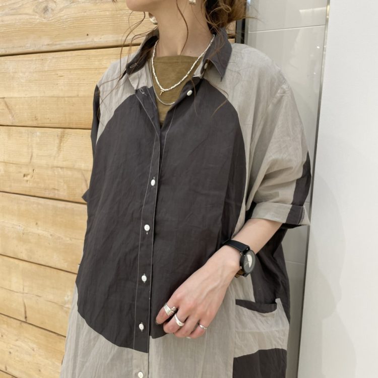 Col.ホワイト、ベージュ、ヘリオトロープ、カーキ(着用商品)、ブルー、チャコール