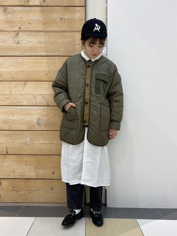 【リップル中綿キルト異素材組み合わせライナーキルトbackプリントコート】