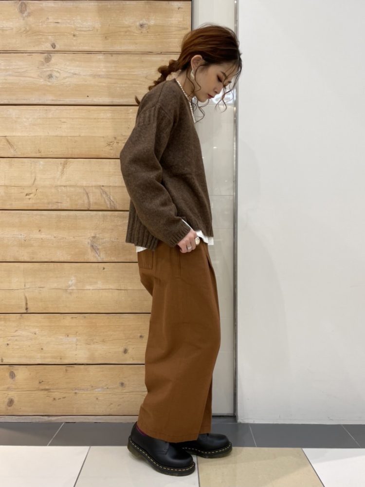『定番ブラウンニットスタイル』